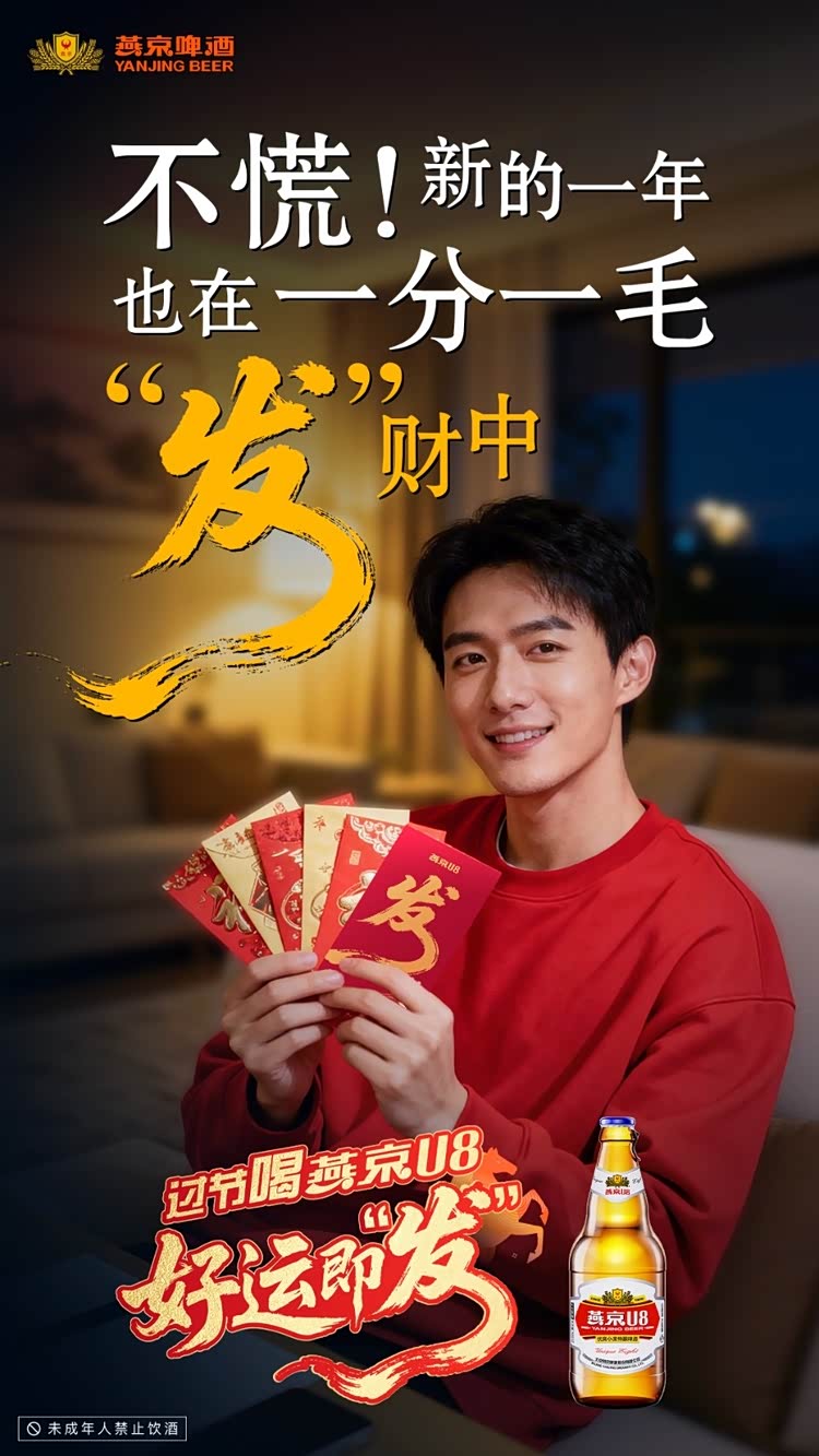 “好运即发”蕴含着丰富的社会文化意涵。“发”在中国传统文化中,本就寓意兴旺、发达、发展,是跨越地域与代际的普世美好愿望。而在当下的社会语境中,“发”更被赋予了多元的解读空间——它可以是事业发展的期许,可以是财富积累的愿景,也可以是好运气的即时降临。燕京U8紧扣这一字眼,巧妙地将品牌祝福与消费者的个人期盼、家庭愿景融为一体。