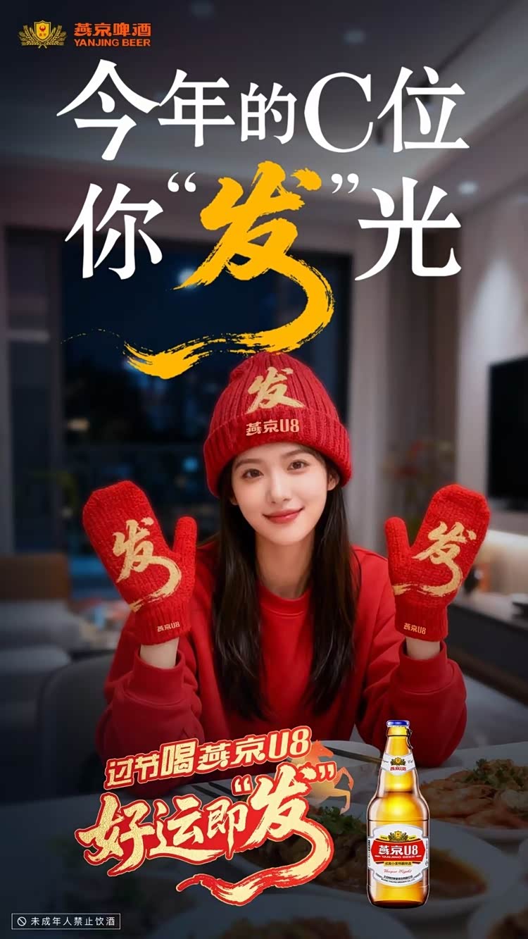 首先,春节营销陷“符号内卷”,U8需建立差异化心智。 生肖设计固然保险,但极易陷入年复一年的创意透支与视觉疲劳中。作为燕京啤酒进攻主流价格带、连接新一代消费者的战略旗舰产品,U8需要的不是一款应景的“生肖皮肤”,而是一个能持续积累品牌资产、传递独特价值主张的长期沟通主题。“好运即发”摆脱了年度符号的时效限制,成为一个可延续、可深化的品牌文化资产。