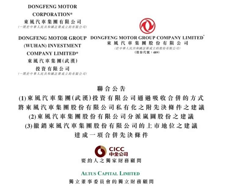 1月13日,东风汽车集团股份有限公司发布公告称,通过吸收合并方式将东风集团股份私有化、东风集团分派岚图汽车股份及撤销集团上市地位的建议,已获得国家发展改革委、商务部及国家外汇管理局的批准、备案或登记以及与合并相关的其他适用政府批准,就此达成一项合并先决条件。