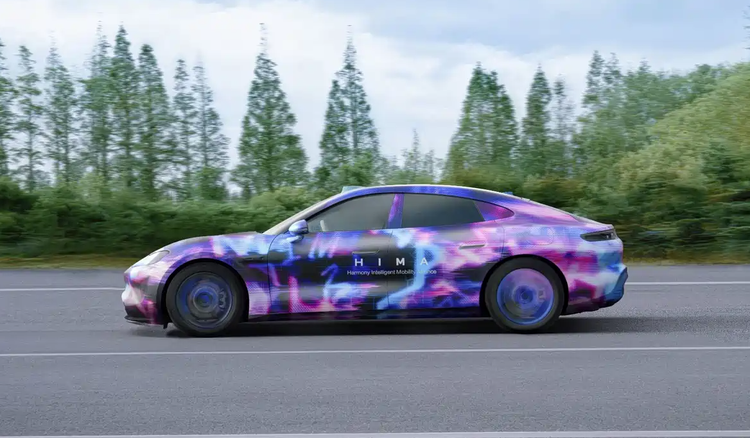 中央的可发光品牌Logo与车顶的激光雷达格外引人注目,预示着其或将搭载HUAWEI ADS 4.0高阶智能驾驶系统。车身侧面是典型的轿跑式轮廓,车顶线条顺滑地过渡至车尾,形成溜背造型,并配有宽阔的C柱与向内收拢的尾肩设计。半隐藏式门把手与大尺寸轮圈进一步增添了时尚与运动气息。