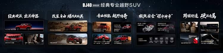 北京越野董事长王昊在发布会上表示,BJ40系列作为中国越野的领路者,不仅亲历诸多荣耀时刻,更成长为中国汽车独特的文化符号,累计销量已突破30万台,深入万千家庭。此次BJ40探险家以“探险家”之名开启新程,在经典设计、自由改装、专业性能、极致安全、跨圈舒适五大维度全面升级,致力于为中国越野车市场再造标杆级专业越野SUV。