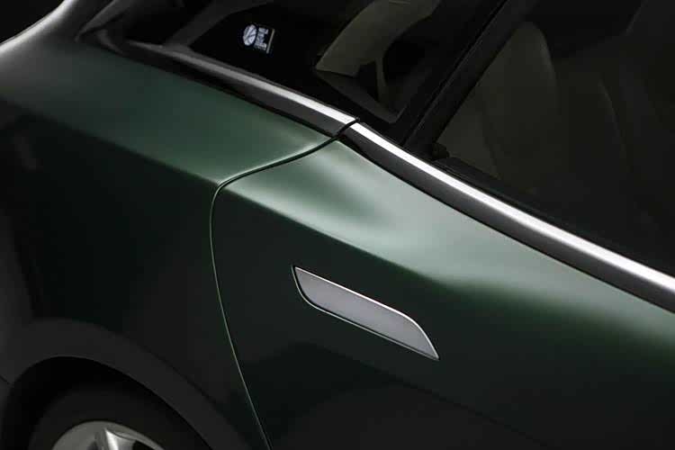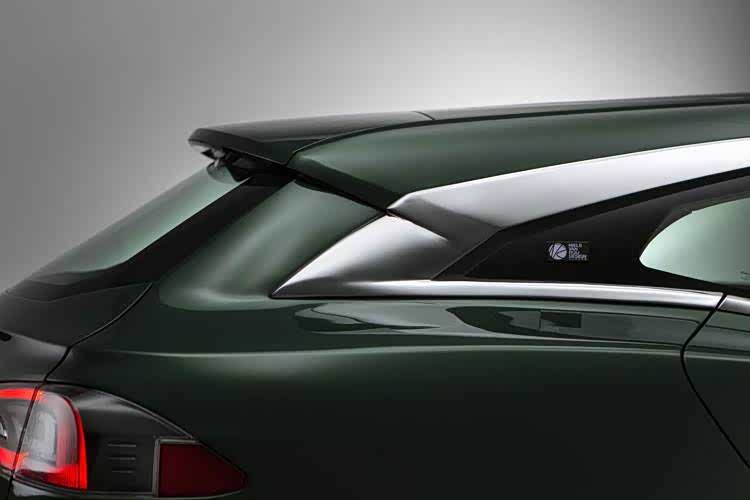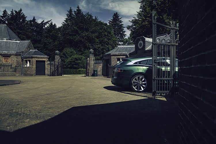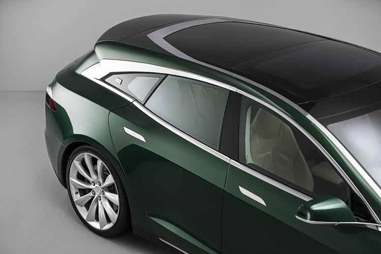 为突出动感不失优雅的尾部造型,Model S Shooting Brake采用逐渐加粗的镀铬饰条在侧窗窗框和车顶勾勒出尾部线条,被车主称为神来之笔。尾门经重新设计,增设尾翼,内藏高位刹车灯和后窗雨刮。同时,保留Model S的核心结构和碰撞缓冲区。绿色金属车漆同样是为de Raadt先生定制。