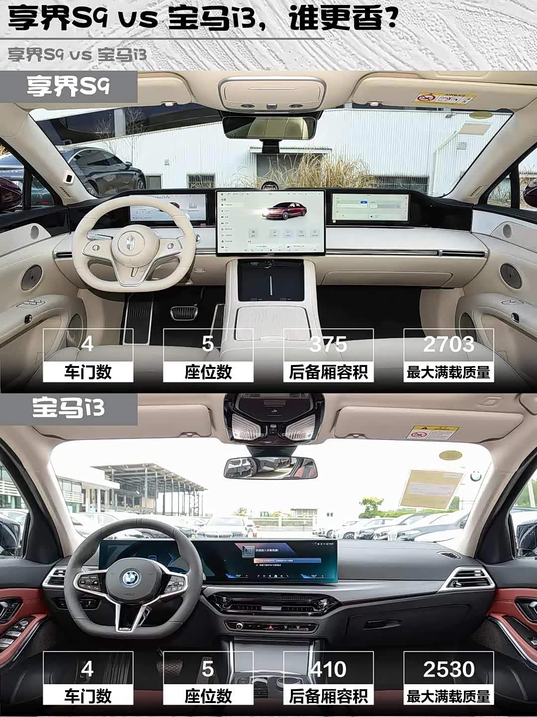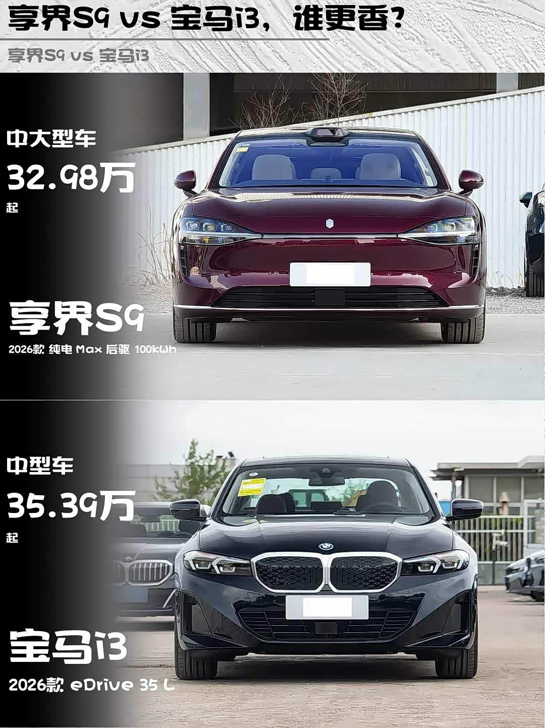 最近深度体验了两款热门纯电轿车—— 享界S9(参数|询价) 2026款 纯电 Max 后驱 100kWh和宝马i3 2026款 eDrive 35 L,作为30万+价位段的实力选手,它们到底谁更香?🔥