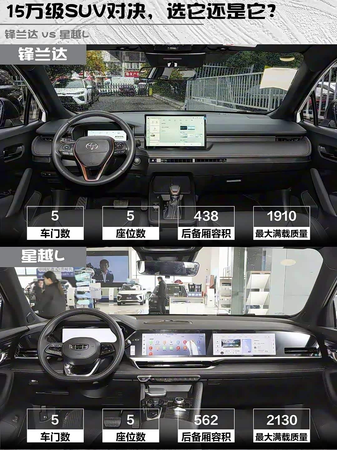 要省心省钱选锋兰达,丰田口碑+低油耗适合家用代步;追求品质享受选星越L,沃尔沃技术背书+越级配置绝对值回票价。两台车性格差异巨大,建议都去试驾对比!你更倾向实用派还是豪华党?评论区见~