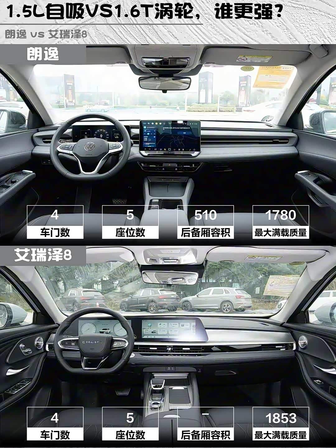 艾瑞泽8轴距2790mm接近B级车,后排能跷二郎腿!朗逸4720mm车长也不差,510L后备箱更规整。但大众后排地台凸起15cm,中间乘客像坐小板凳;奇瑞地台几乎全平,满载五人更舒服。不过朗逸后排座椅放倒后能拓展到1230L,搬家露营神器!