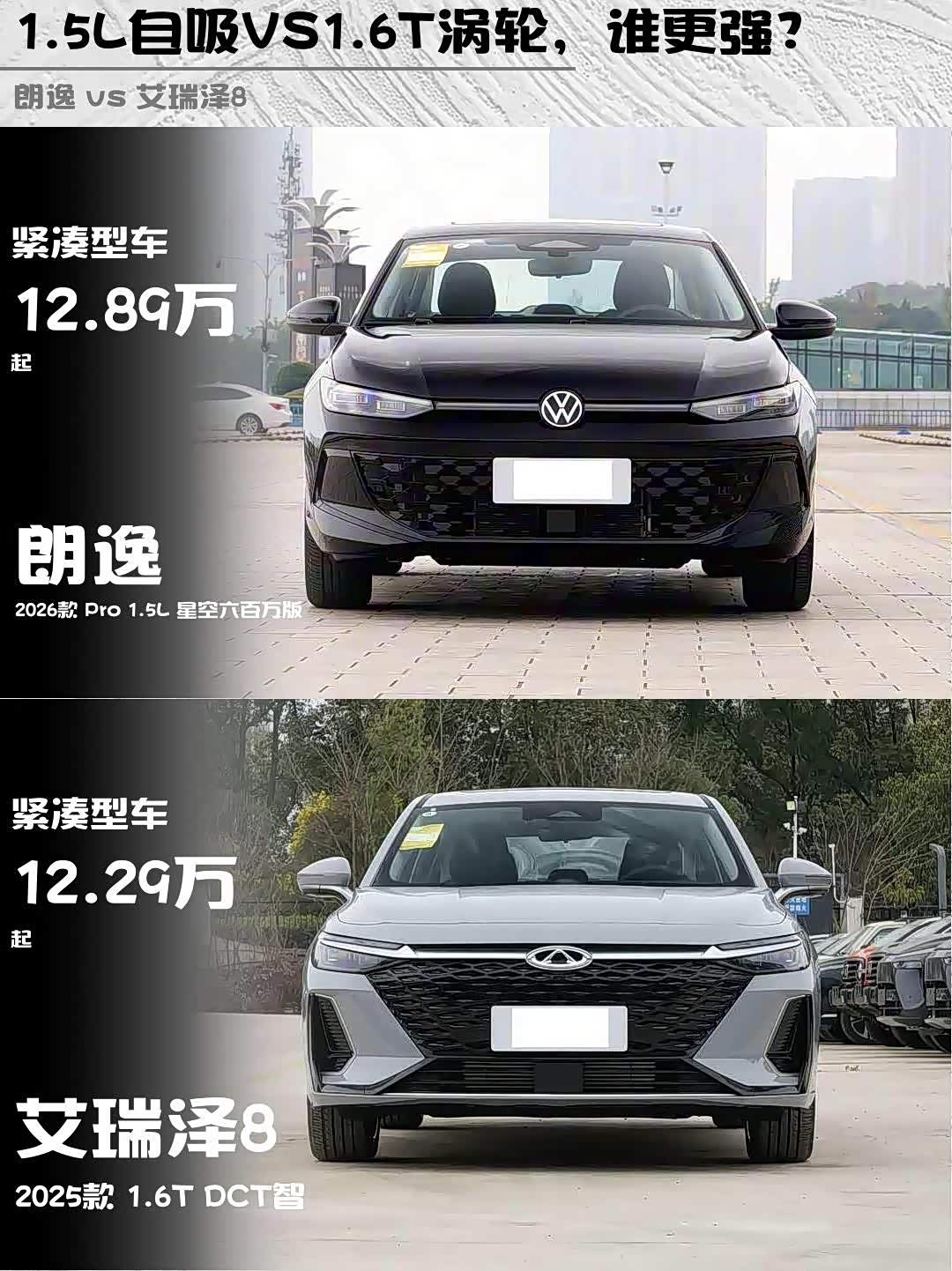最近后台好多兄弟在问12万预算选家轿,朗逸2026款 Pro 1.5L星空六百万版和 艾瑞泽8(参数|询价) 2025款1.6T DCT智到底怎么选?作为深度试驾过两台车的老司机,直接上干货对比!🔥