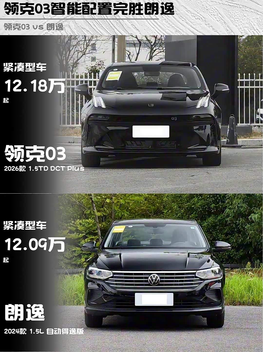 车家号·0浏览·2026-01-16 08:48 · 北京最近在纠结12万级家轿选谁?深度对比了 领克03(参数|询价) 2026款1.5TD DCT Plus和朗逸2024款1.5L自动得逸版,发现这两台车完全是两种性格!🔥
