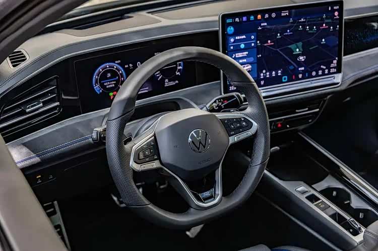 26 款 途观 最显眼的变革莫过于「视觉识别度」的提升。全车系首度将 大众 厂徽光标定位灯 列为标配,透过贯穿式水平灯带与镂刻发光厂徽,勾勒出极具未来感的夜间身影。280 eTSI Elegance Premium 以上车型升级搭载 IQ.LIGHT:HD Matrix 高级矩阵式 LED 头灯。每侧具备高达 19,200 个独立 LED 微像素,能精准遮蔽对向车辆并提供动态引导路径,大幅降低夜间驾驶疲劳。针对热衷个性化的买家,430 TSI R-Line Performance 车型新增墨柏绿车色,并正式引入R-Line Performance 专属炫黑套件,包含高光泽黑化运动化保杆、20 寸 York 黑银双色铝圈,连车内方向盘与门把手也换上炫黑涂装。