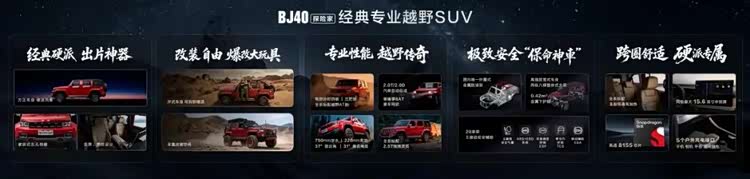 北京越野董事长王昊表示, BJ40(参数|询价)作为中国越野的领路者,亲历过无数盛事荣耀,也成为中国汽车的独特文化符号,在全球用户的认可中走入了万千家庭。BJ40以探险家的名义,开启全新征程,在经典设计、自由改装、专业性能、极致安全和跨圈舒适五大维度再造新经典,为中国越野车市场再造经典专业越野SUV。