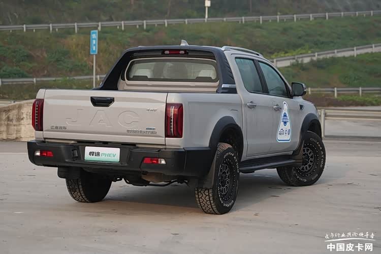 离去角方面,黄海蛟龙X由于货箱部分比较高,使得这台车有着26.4°的离去角,有一定的越野基础素质;江淮悍途PHEV在货箱设计方面同样取巧,所以离去角也非常优秀。