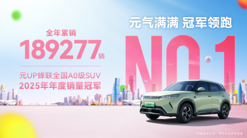 元UP2025年热销189277辆,已蝉联两届销冠