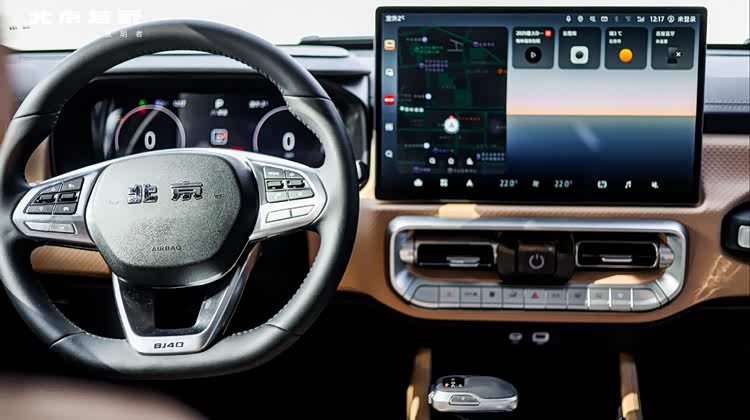 传统上,像BJ40这样的硬派越野,舒适性都差些。探险家做了大量改进。主驾座椅配备6向电动调节与4向专属电动腰托,主副驾全系标配通风、加热功能。更主要的是新的车机系统搭载了高通8155芯片,以及15.6吋大屏,车机使用非常流畅。同时全系标配CarPlay以及亿连互联、全新高德地图包括红绿灯读秒等方案,还有5个TypeC/USB/220V各类充放电口,日常使用可就方便多了。