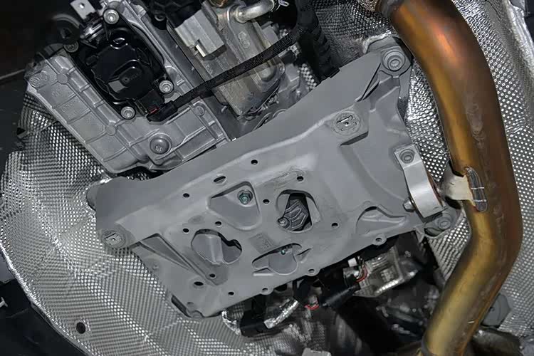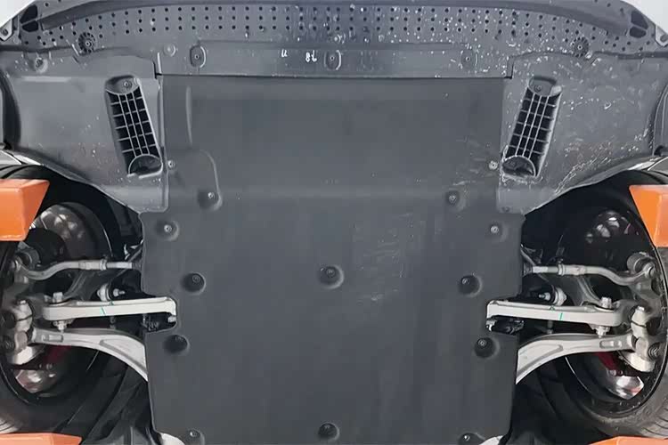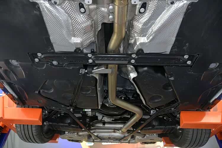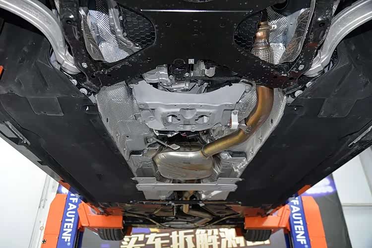底盘平整度相当不错,几乎铺满了护板,因为德国是个不限速的国家,因此德系车比较重视高速性能,底盘平整是必备条件。