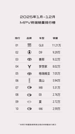 近年来,国内MPV市场竞争加剧,众多国产品牌和新势力均推出MPV车型,抢夺原本被别克GL8一枝独秀的MPV市场。2025年,别克MPV家族凭借燃油、PHEV、BEV的多种能源形势,再次拿下MPV市场的销量冠军。第三方机构数据统计,2025年别克GL8全年销量超11.21万辆,荣膺年度MPV车型销量冠军,其中新能源销量占比超50%,增速超152%。