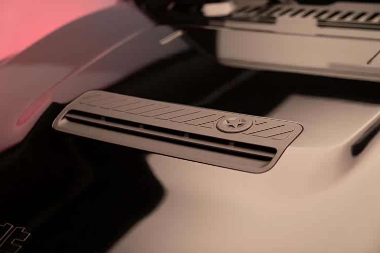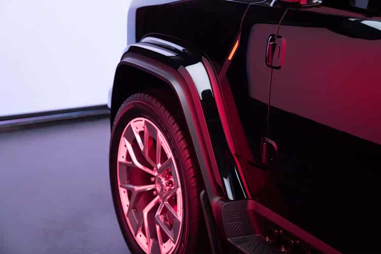 实用性升级更是直击用户痛点:侧窗玻璃前后齐平的设计,不仅让轮廓更简洁,还实实在在优化了风阻、拓宽了驾驶视野,对于经常跑复杂路况的越野玩家来说,视野提升意味着安全性加分;泄压阀位置的调整,实现了电池安全防护等级与车内空间利用率的双重提升,这是用户在越野场景中反馈较多的安全痛点;而传统备胎升级为可储物“小书包”,则把概念车时期就广受好评的设计落地,让硬派座驾多了几分实用机能,放个急救包、越野工具再合适不过。
