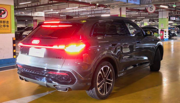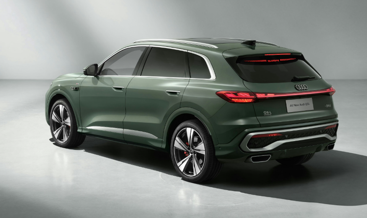 从侧面来看,全新奥迪Q5L匹配了19英寸的轮毂,半隐藏样式的机械门把手设计。值得一提的是,还可以选装20英寸的超大轮毂配置,红色的刹车卡钳与熏黑的锻造轮毂进行匹配,颜值方面确实非常帅气。尾部采用了号称龙鳞水韵造型的尾灯设计,这是妥妥的中国元素。此外,尾灯内部拥有266颗独立发光的光源设计,所以同样是支持智能尾灯设计的,并且还搭载了高位刹车灯。