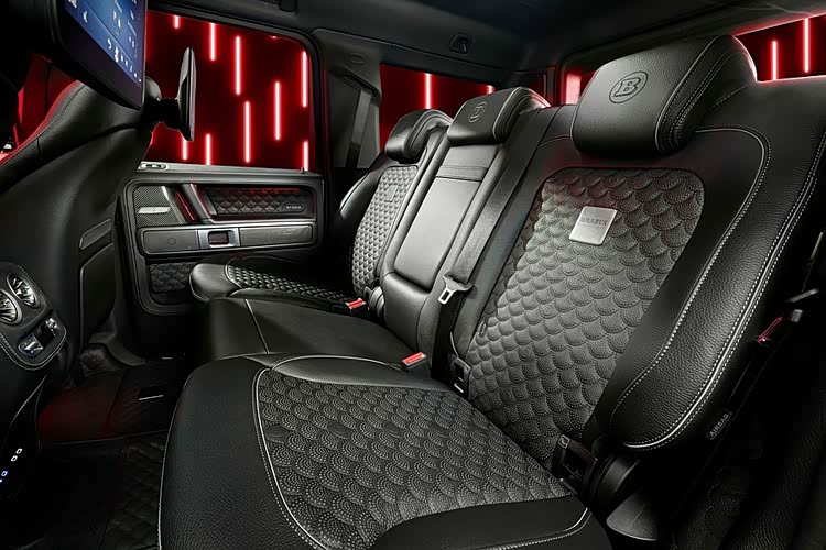 内饰延续了巴博斯顶级改装水准,全车座椅、门板等部位均采用品牌专属的打孔真皮手工缝制,碳纤维饰板的应用也更广泛 —— 方向盘、车门扶手甚至脚踏板都融入了碳纤维元素。