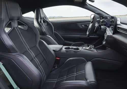 Mustang Dark Horse SC采用Mustang GTD同款平底方向盘,带12点方向标记和性能控制按钮,配以Alcantara面料与碳纤维装饰。赛道性能包提供了Recaro的皮革纤维座椅,搭配太空灰或青柠色装饰点缀,并以储物架取代后排座椅。
