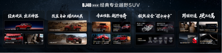 BJ40探险家的产品策略可概括为“守正创新”——在保留经典越野基因的同时,针对现代用户需求进行智能舒适化升级。
