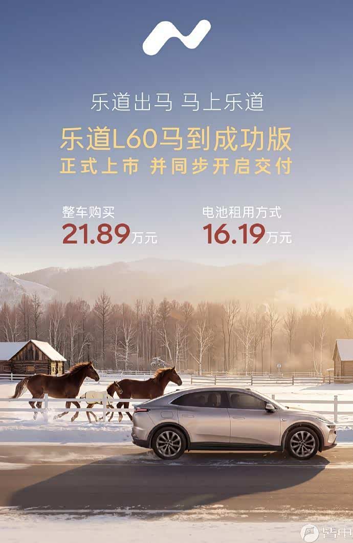车家号·0浏览·2026-01-16 15:15 · 广东1月16日,乐道汽车官宣 乐道L60(参数|询价)马到成功版正式上市并同步开启交付,整车购买方案售价21.89万元,电池租用方案售价16.19万元。
