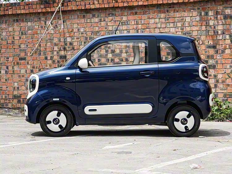 再来看车身侧面部分,车身尺寸定格在3620×1650×1530mm,轴距2200mm,小巧车身适配城市拥堵路况与狭窄车位,转弯半径仅4.8米,女性用户也能轻松操控。侧面线条圆润流畅,双色A柱搭配悬浮式车顶,营造出灵动姿态,搭配向外扩展的侧裙白色饰板,摩登时尚感显著提升,契合车型命名调性。轮毂配备14英寸萌系轮辋盖造型,与车身线条相得益彰,雪樱粉车身搭配银色轮毂,视觉层次感十足。最小离地间隙达130mm,应对城市坑洼路面与减速带时不易托底,实用性拉满。