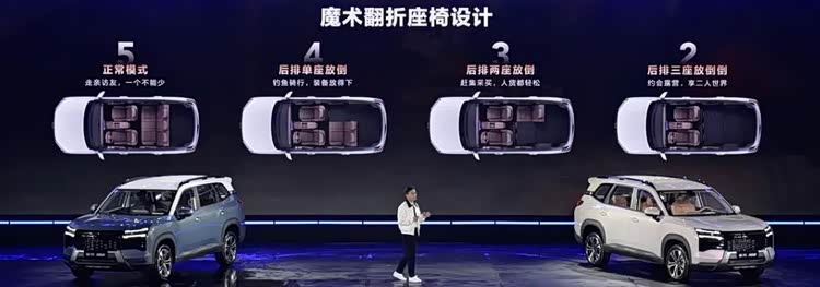 至于后备厢空间方面,常规状态下星光560的容积有763L,还有184L隐藏式下沉空间。而在放倒后排座椅后,其容积便拓展到了1945L,且后排座椅还有32L隐藏式储物格,可充分满足用户对于装载空间的需求。
