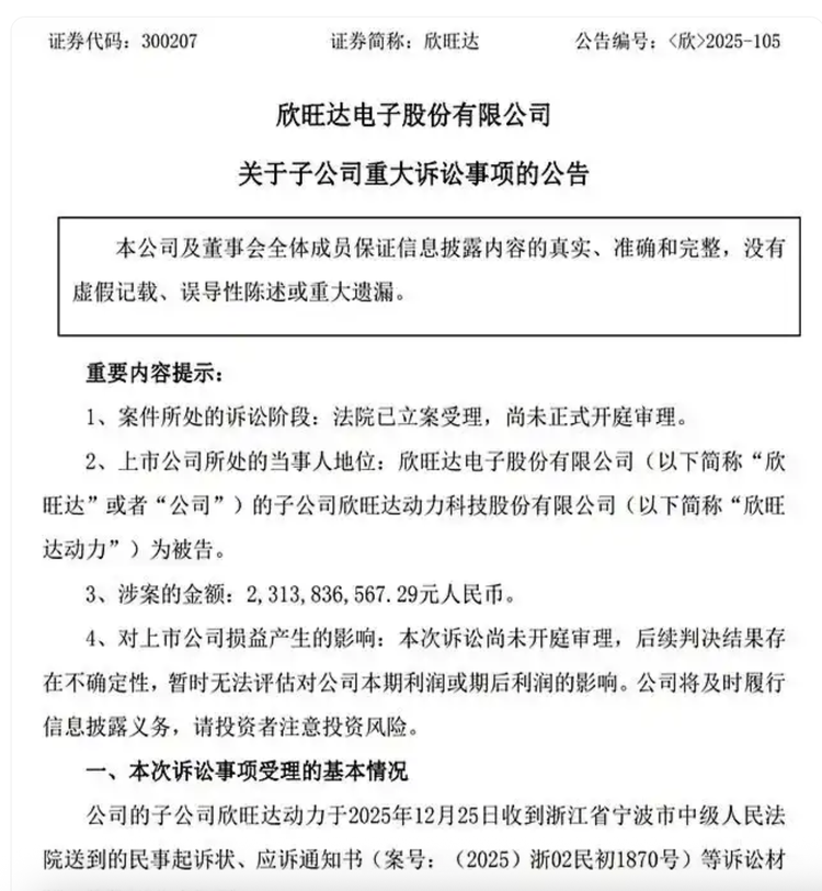 实际上,除了沃尔沃的召回之外,欣旺达和吉利正在“诉讼”当中。吉利威睿已将欣旺达起诉到了宁波法院,索赔23亿人民币,理由就是欣旺达的电芯有质量问题,导致了后者的损失。