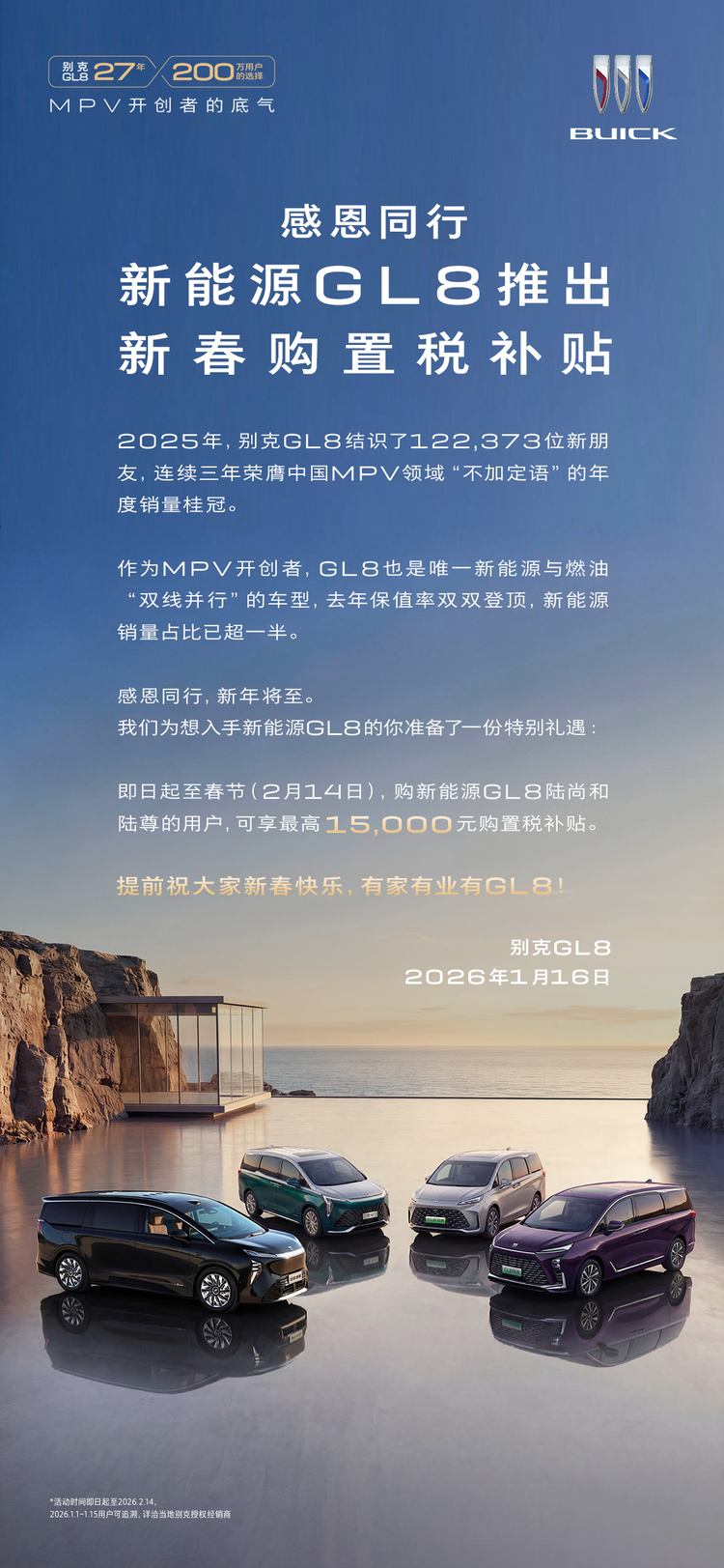 就拿刚过去的2025年来说吧,别克GL8卖出了122373辆,稳坐钓鱼台。现在为了让利给消费者,让大家享受更多的购车福利,别克厂家拿出真金白银给消费者补贴,这真的是豁出去了。