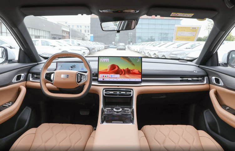 坐进车内,吉利银河A7的入门版车型标配14.6英寸中控屏,其余车型的中控屏则是升级为15.6英寸2.5K分辨率的规格。当然,就算是入门版,银河A7也提供了人机交互体验更好的Flyme Auto系统,同时车机内部的导航软件也是大多数用户习惯使用的高德地图。而在其它配置部分,银河A7全系标配L2级辅助驾驶系统、六处安全气囊、540°全景影像、皮革包裹的多功能方向盘+电子怀挡,以及10.2英寸全液晶仪表和仿皮座椅,从这些配置上来看,其实已经能够证明银河A7就是一台入门即高配的产品。当然除了这些之外,2845mm的车身轴距,也确实为其带来足够宽敞的后排空间。