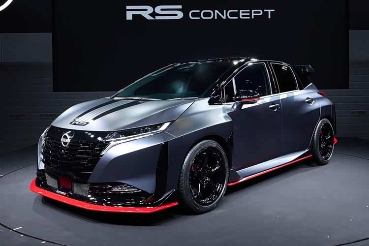新发布的 Aura Nismo RS Concept 是在 Aura Nismo 的基础之上,透过加宽 145 mm 的外扩轮拱,并同步降低车高 20 mm,搭配经过重新设计的 Nismo 空力套件、大型扰流尾翼,以及 Nismo 招牌的红色元素加以妆点,进而形塑出更具视觉张力的性能化造型。除此之外,特殊的 Nismo 消光灰涂装也让整体造型看起来更加抢眼。