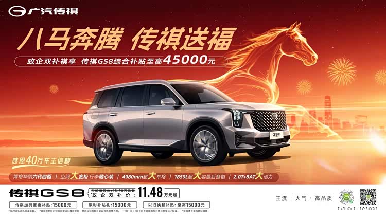 如果说前面的对比让我“倾向GS8”,那最终让我拍板的,说到底还是是价格与政策。传祺GS8 指导价:15.98万元起,红旗HS5 指导价:18.68万元起,在配置相当、空间更大的前提下,GS8已经便宜了将近3万元。而传祺GS8最近的购车政策,更是几乎没有对手。当前买车限时补贴15000元,置换补贴15000元,结合最高15000元的新一轮2026年汽车以旧换新补贴政策,综合补贴至高可达45000元。算下来,最低11万多就能把一台中大型SUV开回家,而且不是“丐版”,妥妥的升舱了。