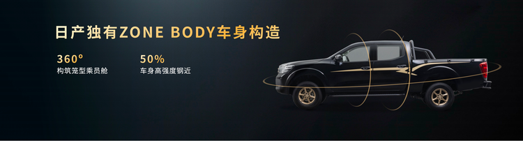 可靠耐用,安全随行:传承日产全球标准,与纳瓦拉同平台共线生产。车身采用ZONE BODY区域架构,高强度钢占比近50%,关键部位使用1300MPa热成型防撞梁,配合全封闭“O”型车架与笼式安全舱体,保障全场景行车安全。