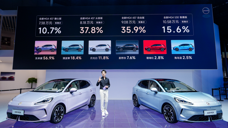 在这一背景下,MG品牌凭借全新 MG4(参数|询价)走出了一条漂亮的翻红之路:上市首月交付11790辆,连续四个月交付破万,MG品牌国内销量由过去的燃油车主导转变为新能源主导。可以说2025年MG品牌成功打响了新能源战略转型的第一枪。