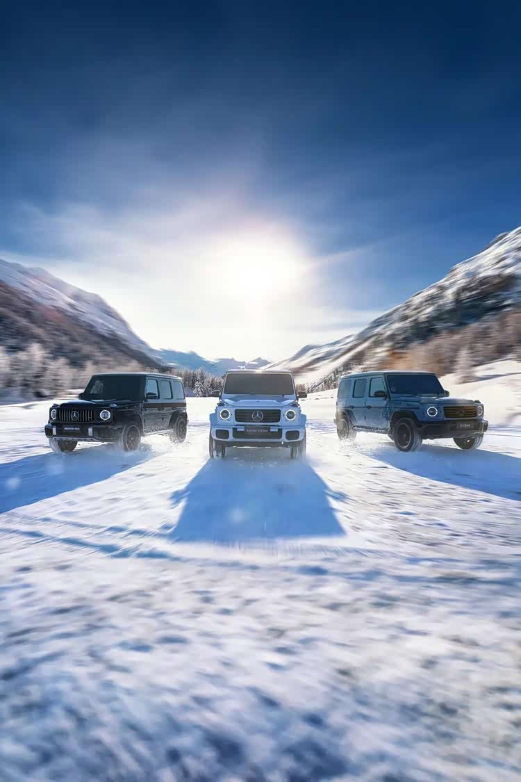 雪原穿越的征途上,梅赛德斯-AMG G 63与G 500组成的油电双雄,展现了越野图腾的硬核实力。AMG G 63的4.0升V8双涡轮增压发动机,在48伏ISG智能电机加持下迸发430千瓦功率,5种公路模式+3种越野模式的选择,可从容应对冰原、碎石等复杂路况。其搭载的AMG主动式行驶控制悬挂,能最大限度保持车轮与地面接触,提升牵引力与爬坡能力;AMG Traction PRO模式则专为低附着路面设计,进一步强化越野性能。G 500则凭借经典的三把100%差速锁与低速越野挡,在35度侧倾坡度上依旧稳如磐石,247毫米的最小离地间隙、31度接近角与30度离去角,让深雪、陡坡都如履平地。“数字越野座舱”实时反馈坡度、转向角等专业参数,“实时越野路面影像”功能则消除了前机盖的视野盲区,数字化科技让越野变得更轻松。