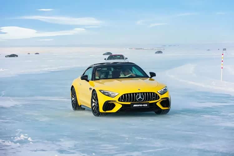 梅赛德斯-AMG SL 63 4MATIC+在亚斯码头冰面赛道的表现,则是优雅与性能的绝佳平衡。“一人一机”打造的4.0升V8双涡轮增压发动机,匹配AMG SPEEDSHIFT MCT 9速变速箱,动力输出酣畅淋漓。完全可变的AMG高性能四轮驱动增强版,可在50:50到0:100之间灵活切换扭矩分配,既能以四驱模式稳定过弯,也能切换至纯后驱模式享受漂移乐趣。带主动式液压侧倾稳定功能的悬挂系统,能在几分之一秒内调整扭转力度,配合高性能复合制动系统与电控限滑后差速器,每一次制动、转向都精准无误。更令人称道的是,电动软顶敞篷15秒即可开启,AIRSCARF头颈暖风系统送出的暖流,让驾驶者在极寒中也能敞篷驭风,纵享冰原美景。