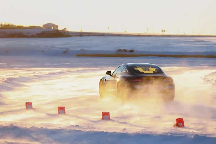 后驱玩家的乐趣,则在梅赛德斯-AMG GT 50驰骋英特拉格斯冰面赛道时体现得淋漓尽致。作为AMG GT家族唯一的后驱车型,其搭载的M139“一人一机”四缸发动机可迸发310千瓦(421马力)的动力,选装AMG动态增强版组件后解锁的赛道模式,配合AMG动态发动机支座与电子后轴差速锁,能精准控制后轮牵引力。在冰面弯道中,只要轻打方向、控制油门,车尾便会以可控的角度滑动,漂移姿态丝滑流畅,完美诠释了后驱跑车的驾控精髓。