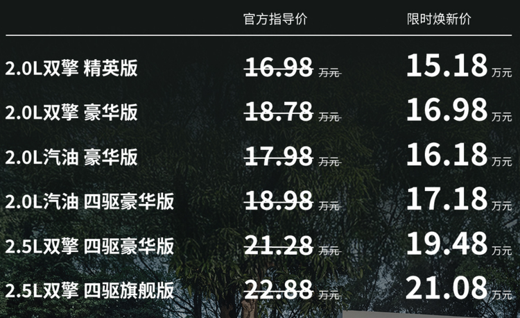 全新丰田RAV4荣放指导价16.98-22.88万元,限时焕新价15.18-21.08万元,这一价格在老款车型“打下的江山”面前显得尤为尴尬。此前,老款车型终端优惠巨大,入门版裸车甚至能谈到12万出头,即便是算上购置税整车落地也不足15万。