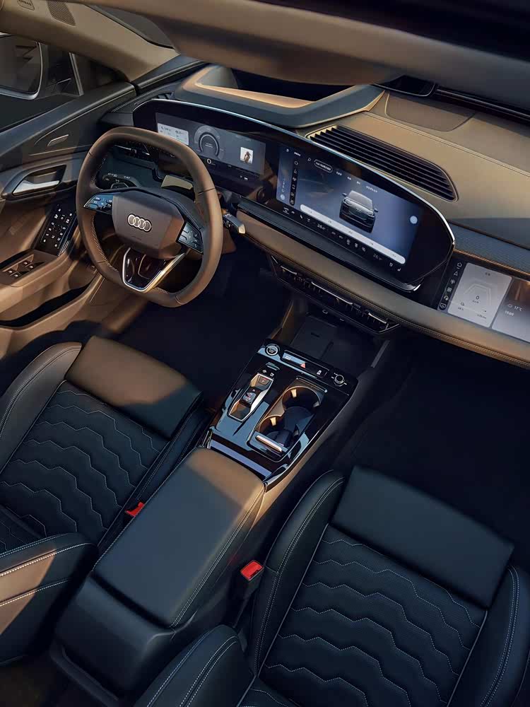 全新奥迪Q5L的内饰应用奥迪最新座舱布局,11.9英寸液晶仪表屏、14.5英寸中控MMI触摸显示屏以及10.9英寸副驾娱乐屏,并配备上下平底式方向盘。同时,换挡机构改为电子滑块样式。全新奥迪Q5L还搭载L2级别智能驾驶辅助系统,能够实现窄路循迹倒车,也能够实现高速、高架以及城区道路的巡航辅助系统,不过华为乾崑辅助驾驶系统以选装形式供应,配搭包含双激光雷达在内的33个感知硬件,可实现高速/快速路/城区道路巡航辅助等功能。