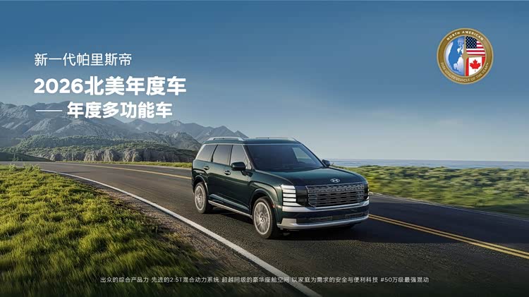 现代汽车旗下进口混动大六/七座旗舰SUV新一代帕里斯帝荣获“2026年北美年度多功能车”大奖