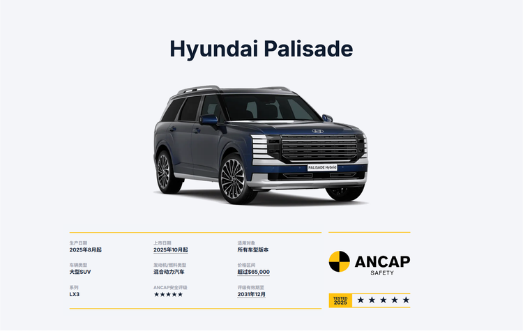 新一代帕里斯帝不仅注重舒适性,更将安全置于核心位置。其在IIHS(美国公路安全保险协会)测试与ANCAP(澳洲新车安全评鉴协会)五星安全评级中均表现出色,充分印证了车辆卓越的安全实力。这得益于现代汽车先进的整车架构:通过高比例超高强度热成型钢的应用,构筑起刚劲可靠的车身骨架;配合科学的多载荷路径结构设计,在碰撞发生时能高效引导与分散冲击能量。全系标配的多方位安全气囊及带预紧功能的安全带系统,也能进一步减少在碰撞时对驾乘人员的伤害,体现出现代汽车在主/被动安全配置上“入门即高配”的十足诚意。