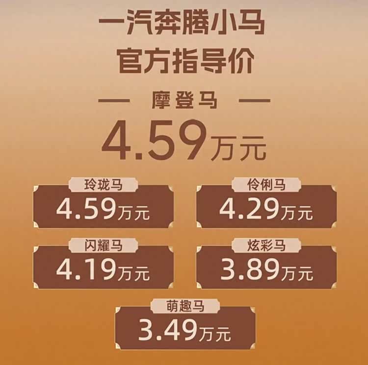 车家号·0浏览·2026-01-16 19:15 · 河南日前,我们从一汽奔腾获悉,小马系列新增摩登马款型上市,指导价4.59万元。从定价来看,小马摩登马与玲珑马指导价一致,均为小马系列定价最高的款型,主要差异在于摩登马新增都市漫游系列套件,使整车具有复古化外观风格。