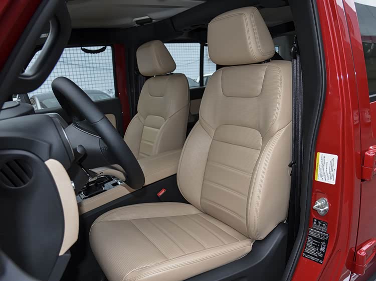 前保险杠配了两个红色拖车钩,黑化格栅看着也挺战斗。非承载车身结构决定了这车开起来不会像轿车那么舒服,过减速带会有明显跳动,但换来的是真正能下场地的硬实力。近半年BJ40卖了1.7万多台,在硬派SUV这个小众市场算是站稳了脚跟。