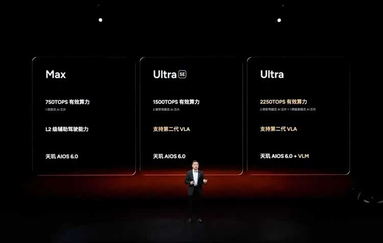 所有车型加价1.2万元可以升级为Ultra SE版本,该版本搭载2颗图灵AI芯片,支持第二代VLA+天玑AIOS 6.0。