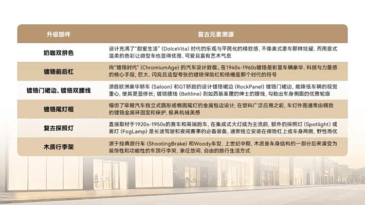 从产品层面看,“摩登马”并非换代或重大改款,而是在原有一汽奔腾小马基础上,增加了完整的设计套件。其“西西里假日”主题,通过独特的奶咖双拼色、大量镀铬装饰、复古探照灯和木质元素行李架,构建了一套完整的、具有辨识度的视觉体系。这套设计语言的目标非常明确:吸引那些对“方盒子”造型审美疲劳,对车辆“颜值”和“个性表达”有更高要求的新一代城市消费者,尤其是女性用户。这标志着部分车企开始将电车从“代步工具”向“时尚配饰”或“生活方式的延伸”进行价值重塑。