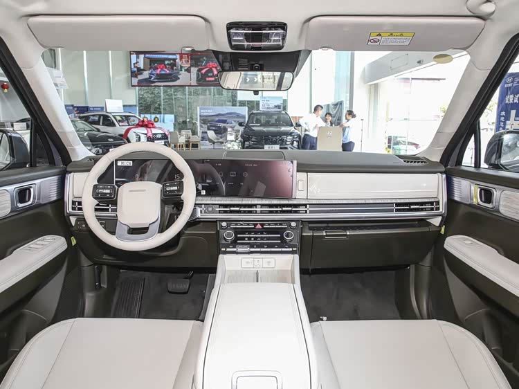 进入车内,内饰以豪华质感与家庭实用性为核心,中控台配备双12.3英寸连屏+HUD抬头显示,形成三屏联动交互,信息读取清晰便捷,车机系统支持流畅导航与多媒体控制。副驾驶还配备一键舒享零重力座椅,长途乘坐舒适性大幅提升。空间表现是核心优势,提供5/6/7三种座椅布局选择,适配不同家庭需求。实测身高180cm乘客坐于第二排,腿部余量超两拳,第三排虽适合儿童或短途乘坐,但头部与腿部空间优于同竞品。后备厢常规容积充裕,第三排座椅完全放平后可拓展出超大装载空间,露营装备、大件行李均可轻松容纳。