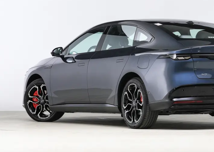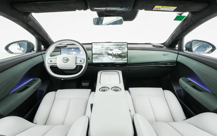 在车漆上也有丰富的颜色可以选装,相比日产N6的设计,日产N7就更运动一些,但整体轮廓还是很饱满的。配有隐藏式门把手,花瓣式轮毂和红色卡钳,这些细节元素的加持下也让日产N7更加大气,质感表现也不错,尤其是车窗采用了一体式黑漆材质,配合C柱的三角窗,既能保证车内的采光也能提升外部的质感。尾部也是采用类似轿跑的风格,车顶弧线还能营造悬浮效果,营造出更好的车身姿态,甚至有像特斯拉的感觉。不管怎样,我觉得日产还是听劝了,至少日产N7的设计没让我们失望,日产N7依旧是一台颜值很高的车型。