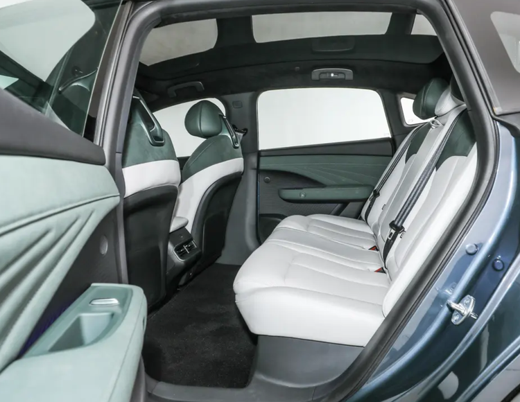 后排也有了分段式的填充,后排也有独立空调和纯平设计的地板,座椅也采用双色拼接,并且前排座椅前部还进行掏空处理,所以也就保障了后排充足的腿部空间,翘起二郎腿还是很轻松的。像前排也有双层隔音,也有前后独立悬架,舒适度的调校也有明显提升,包括静谧性都很不错。辅助上也有360°影像、底盘透视、自适应巡航等L2级功能都是满配,所以我觉得日产N7的卖点还是配置高,用料足,调校舒服。
