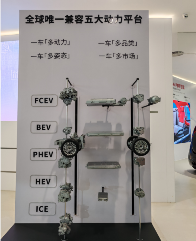 在归元平台之下,不但可以产生不同级别的轿车、SUV和MPV等不同品类的车型,还具有丰富的动力系统包容性:
