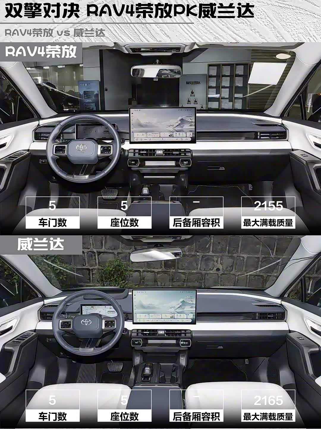 3️⃣ 驾驶质感:两车底盘都偏舒适,但荣放转向更轻盈,市区穿梭像开小车;威兰达高速变道支撑性更好,适合常跑长途的老司机