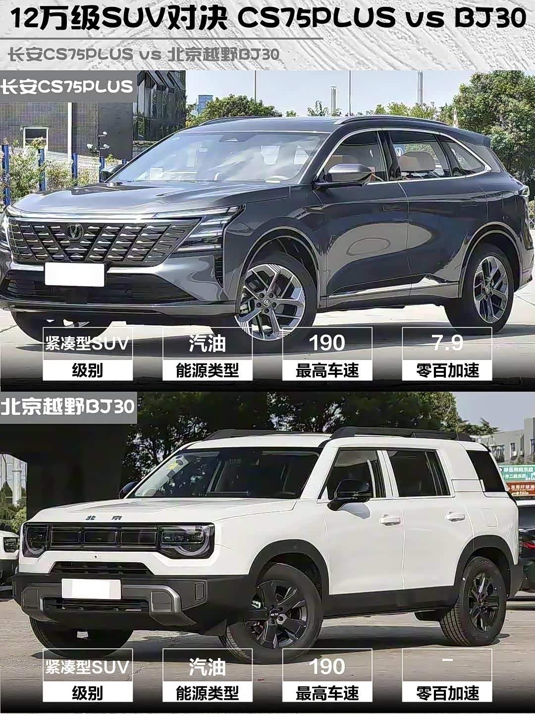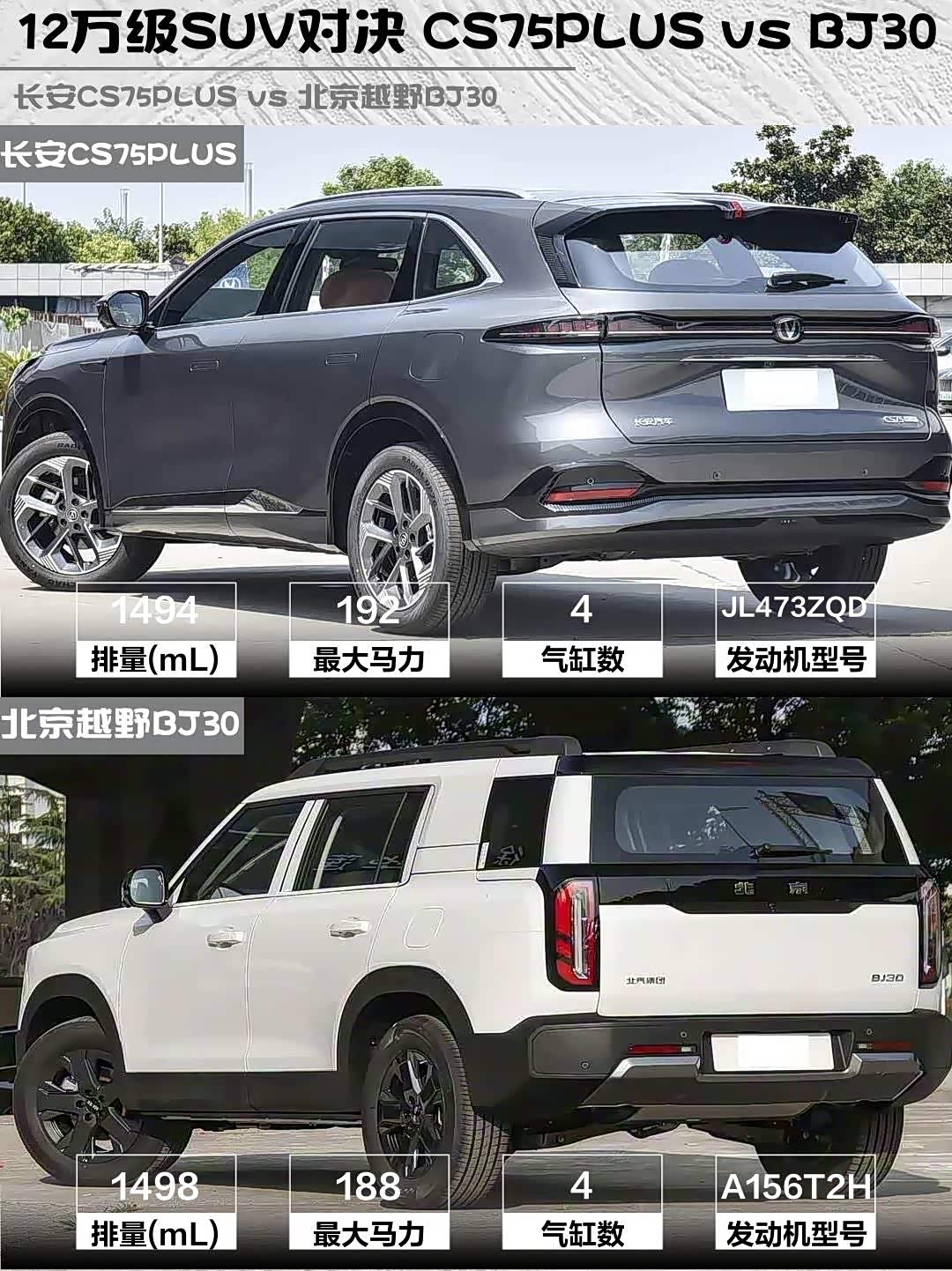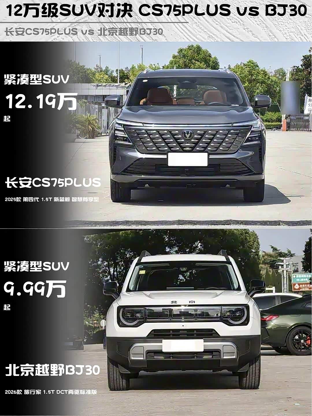最近在选车的小伙伴看过来!今天给大家深度对比两款热门SUV—— 长安CS75PLUS(参数|询价) 2025款第四代1.5T新蓝鲸智慧尊享型 vs 北京越野BJ30 2026款旅行家1.5T DCT两驱标准版,看完这篇你就知道哪款更适合你!🔥